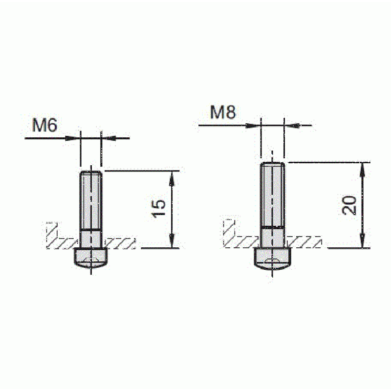 In this drawing, M8x20 button head screws are used with S-8P-ISO clamps.