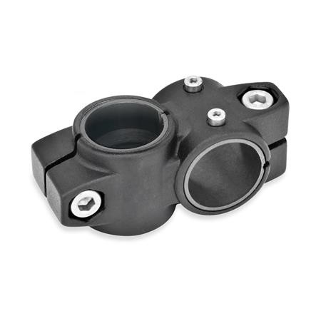 Two-way linear actuator connectors GN 132.1 are based on two-way connector clamps. The additionally provided mounting holes are used to connect to the drive key of a linear actuator. Bores with the designation G are equipped with sleeve bearings.