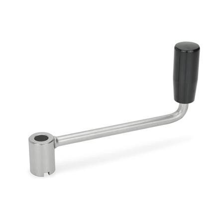 These GN 369 crank handles are ideal for light-duty applications and are of extremely good value. A suitable dowel in the shaft and the slot in the handle provide a cost-effective connection to the shaft. To secure the handle permanently to the shaft, remove the plastic cap and insert the screw.