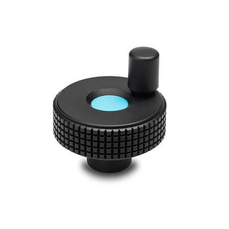 - Revolving knobs GN595 - Plastic, Technopolymer (Polyamide PA), black, matte. Spindle steel zinc plated, blue passivated.