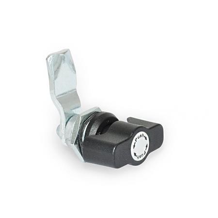 Latches GN 115.9 have a push-to-turn safety function. In the two end positions, the spindle is locked in place by the latch. The device can only be turned 90° when the operating element is pressed down, which releases the safety pin from the locked position. This feature reliably protects the latch from moving on its own or as the result of vibrations.