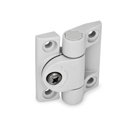 The actuating torque of these hinges GN 233 can be adjusted using a set screw, allowing doors and flaps to be kept open or partially open or closed. Adjusting is a simple process, allowing the hinges to be customised to your exact requirements.