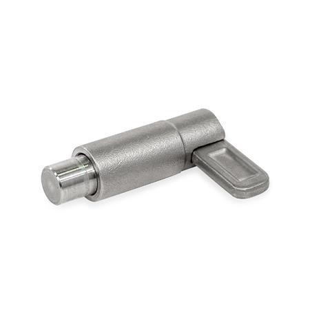 With indexing plungers GN 722.4, the plunger pin is actuated via the latch. The stainless steel version A4 is suitable for use in particularly aggressive environments.