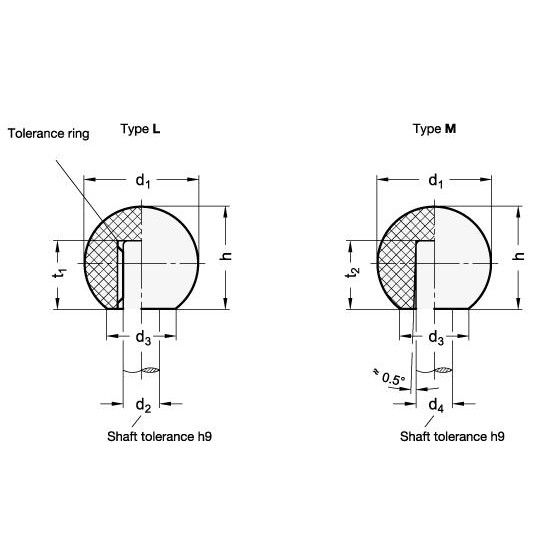 The DIN 319 ball knobs type L and M are used on shafts without a thread. They have a comfortable, modern design, ideal for use on crank handles, handwheels & levers.