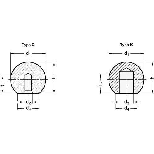 DIN319 Steel or Aluminium Ball Knob with Threaded Bush or Plain Hole