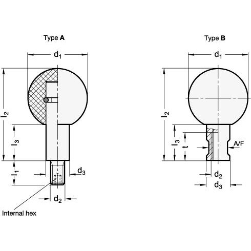 The GN 319.2 revolving ball knobs can be used with handwheels instead of revolving handles. The ball knob is comfortable in the hand and hard-wearing.