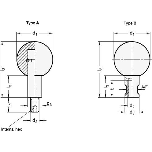 These knobs have the same assembly dimensions as the DIN39, DIN98 and GN598 handles. Additionally, they come in a steel shaft option, see GN319.2.