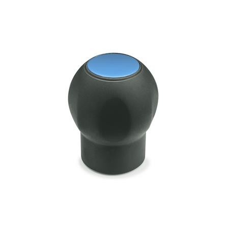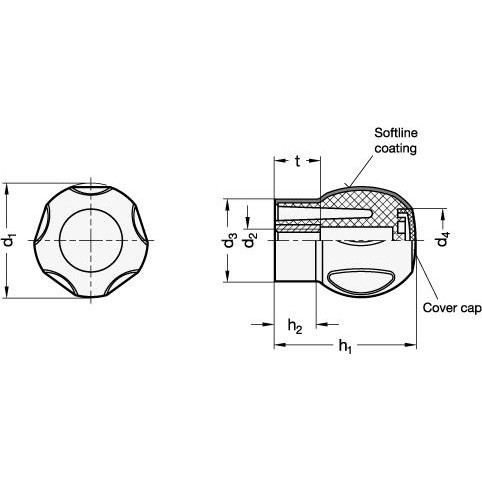 The GN 675.1 ball knob conforms to Ergostyle® requirements, resulting in a high-quality, low-fatigue handle. The Softline jacket makes these ball handles particularly ergonomic, and due to its nonslip properties, it is easy to grip. The soft, slip-proof contact area improves the contact for moist hands (for example, where there is perspiration) and in dry ambient conditions, in the event of oily surfaces and in very high or very low (freezing) temperatures. These Softline ball handles are suitable for use both as operating elements and for clamping. The hard plastic core guarantees the perfect anchoring engagement of the threaded bushing under heavier loads. The transparent sight cap allows symbols to be placed underneath.