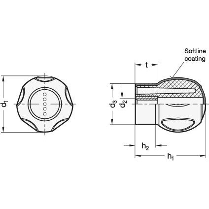 The GN 675 ball knob conforms to Ergostyle® requirements, resulting in a high-quality, low-fatigue handle. The Softline jacket makes these ball handles particularly ergonomic, and due to their nonslip properties, they are easy to grip. The soft, slip-proof contact area improves the contact in hot, moist and dry ambient conditions, in the event of oily surfaces and in very high, very low, or freezing temperatures. The Softline ball handles are suitable for use both as operating elements and for clamping. The hard plastic core guarantees the perfect anchoring engagement of the threaded bushing, even under heavier loads.