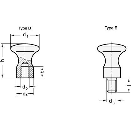 GN75.5 Stainless Steel Mushroom Knob with Internal Thread or Threaded Shaft