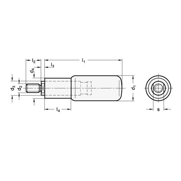 GN798.4 Plastic Revolving Handle with Stainless Steel Spindle (Mounting from Operator’s Side).