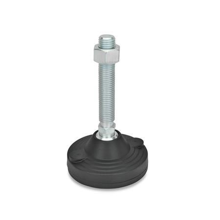 These levelling feet, GN 245, have a slightly stepped base which gives them an attractive, easy to clean shape. They stabilise machinery & reduce noise & vibration