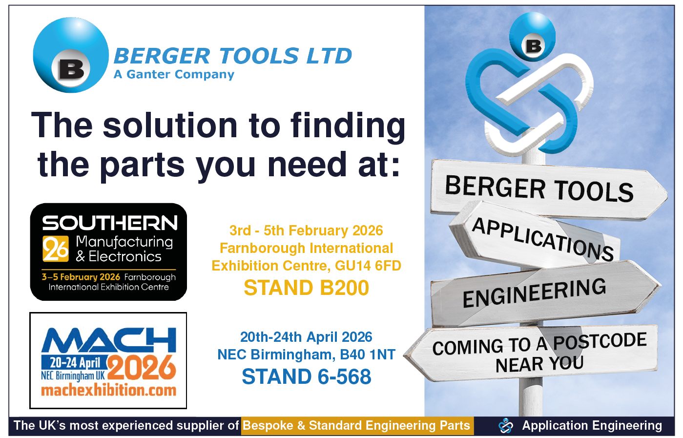 The Berger Tools stand is a unique opportunity to see the latest in innovative bespoke and standard engineering parts from our manufacturing partners, Ganter Norm, EMG Presses, ENS, Newstark and Special Springs. Our expert Technical Sales Team will be available to listen to your questions - gain valuable insights and advice from their years of first-hand industry knowledge. We would delighted if you can join us!