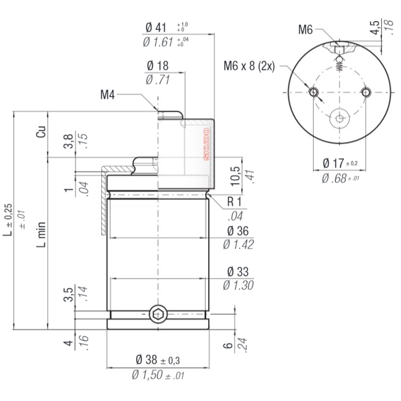 The KE series gas springs are designed to have maximum force with its piston sealed. They also boast a variety of safety features including OPAS pressure safety, OSAS over stroke safety system & SKUDO protective cap.
