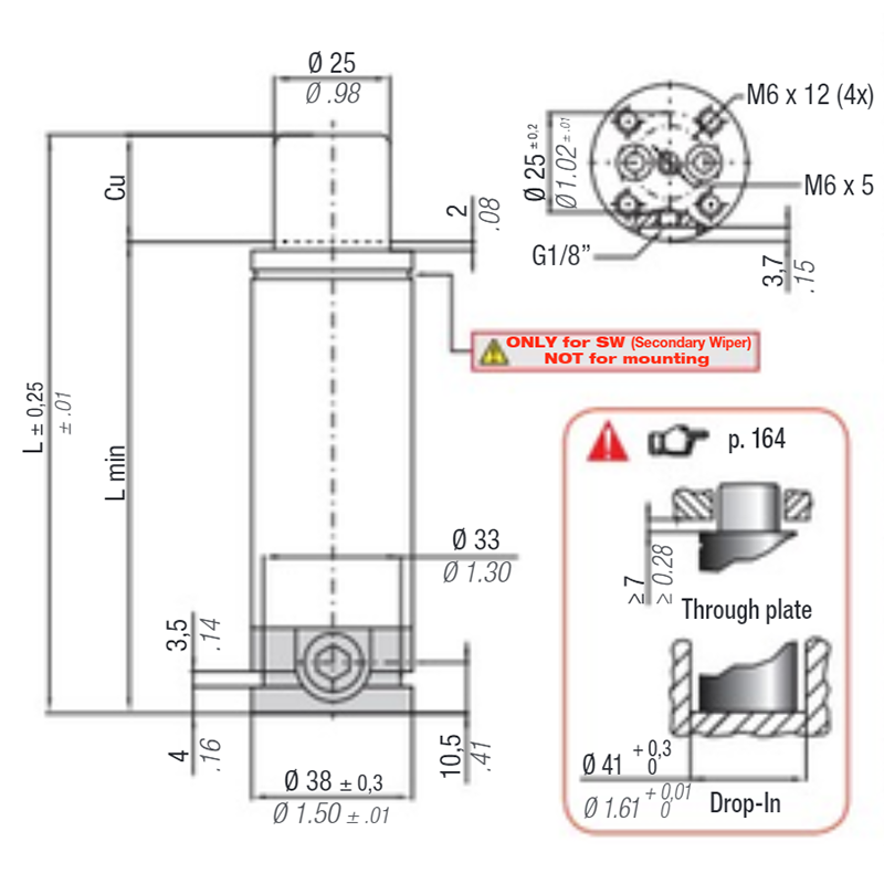 Maximum force and minimum encumbrance for cylinders with rod seal.