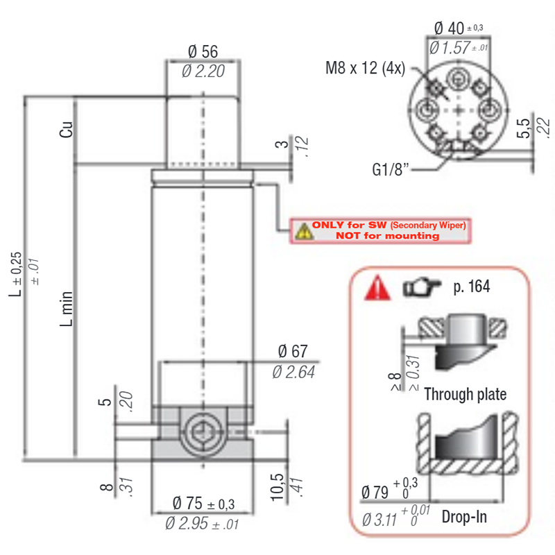 Maximum force and minimum encumbrance for cylinders with rod seal.
