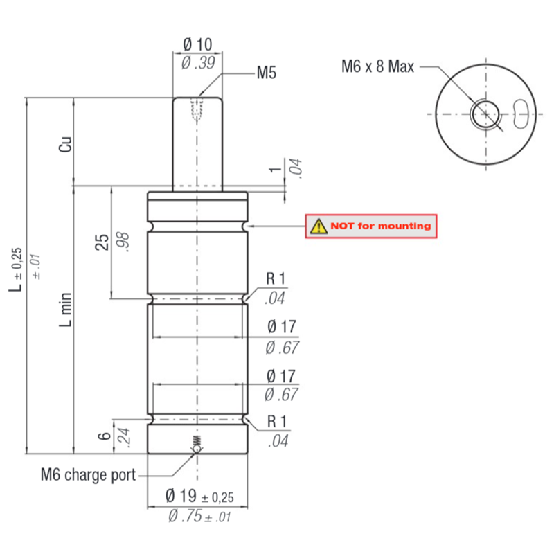 MP150 Nitrogen Gas Cylinder, Maximum Force, Piston Sealed