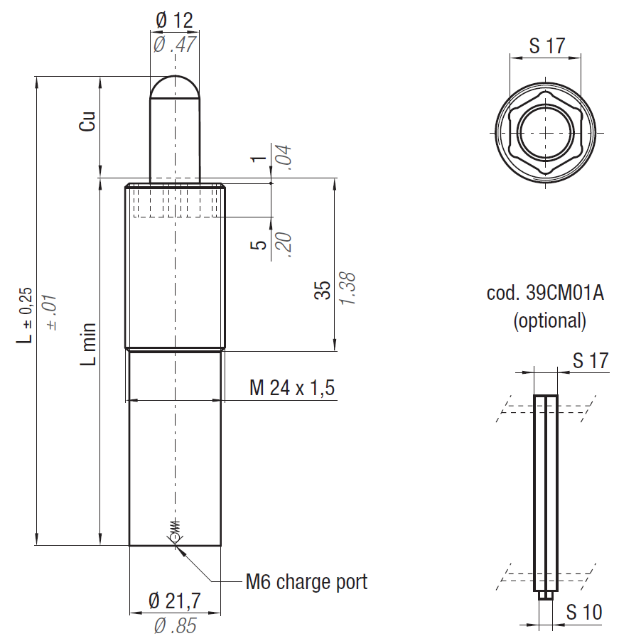 Our NE24X1,5 Gas Ejectors come in a M24 threaded body size. Standard stroke of 10-125mm with initial force daN of 11 - 170.