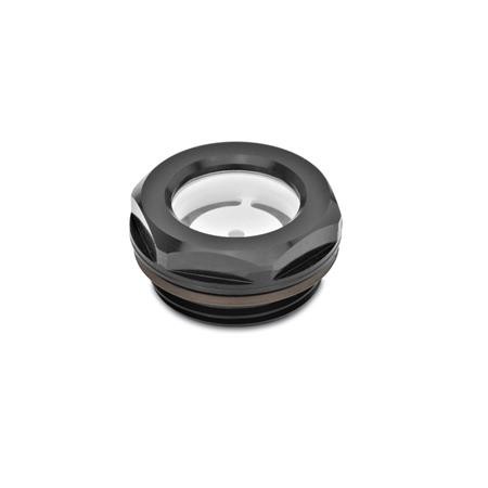 GN743.1 Oil Level Sight Glass, Aluminium & ESG Glass, Black Anodized