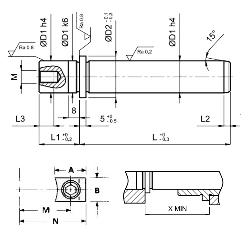 Case hardened, ground and lapped, core resistance 1000/1050 N/mm2. Supplied complete with clamps 6-91-1 and button head screws. Compatible with DBS & DBB Demountable Bush