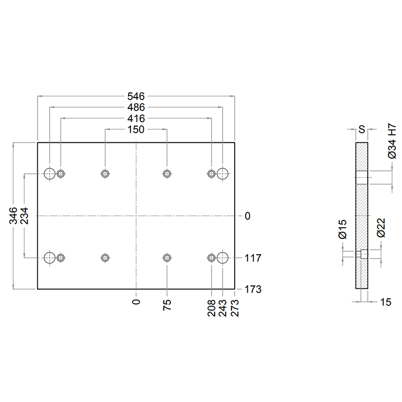 PD 296x546 - Lateral Overhanging Top / Bottom Mounting Plate