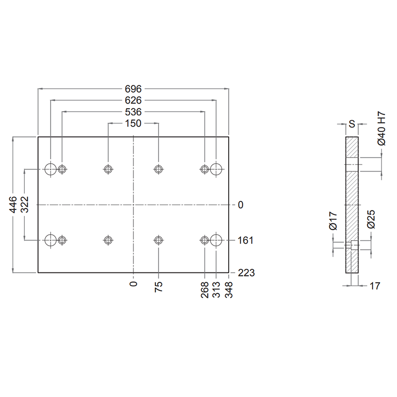 PD 396x696 - Lateral Overhanging Top / Bottom Mounting Plate