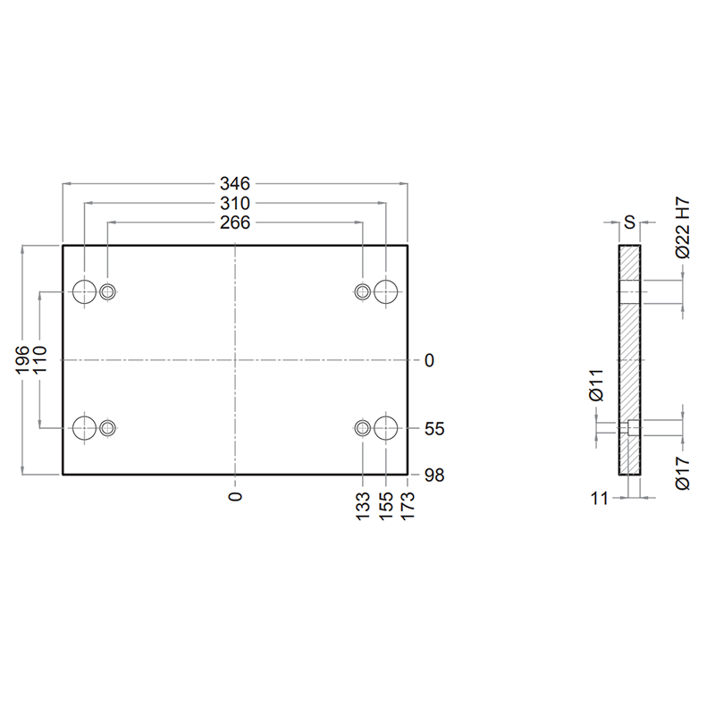 PD 156x346 - Lateral Overhanging Top / Bottom Mounting Plate