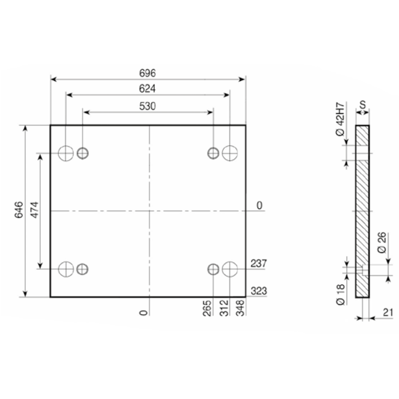 PD 546x696- Lateral Overhanging Top / Bottom Mounting Plate