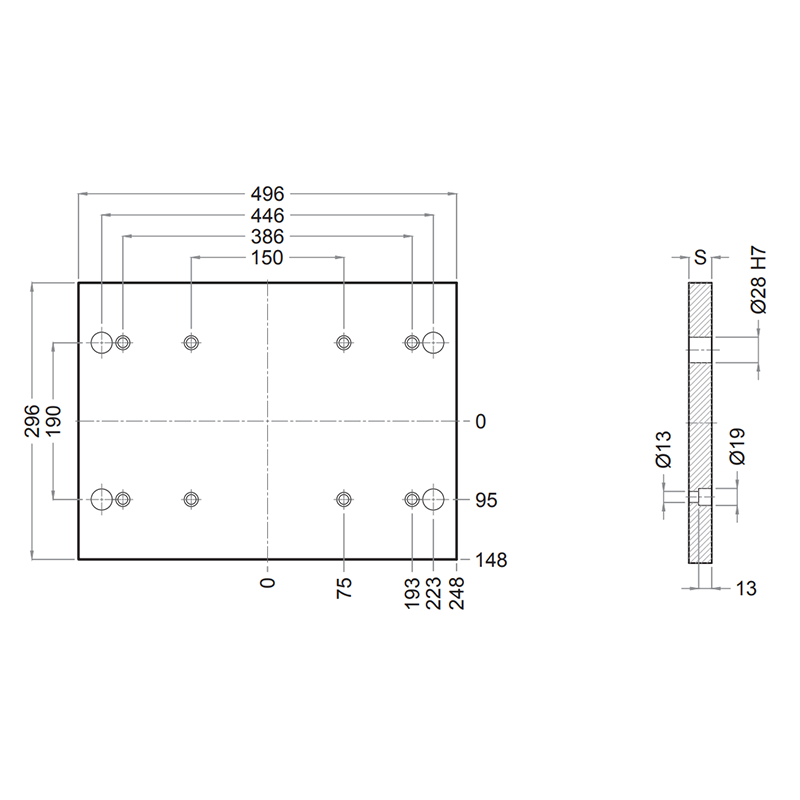 PD 246x496 - Lateral Overhanging Top / Bottom Mounting Plate