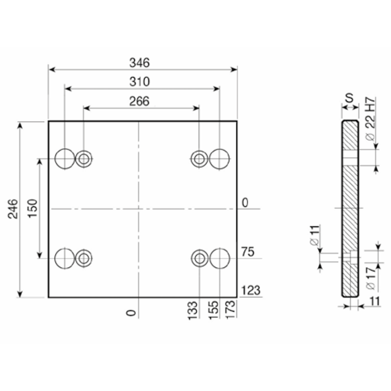 PD 196x346 - Lateral Overhanging Top / Bottom Mounting Plate