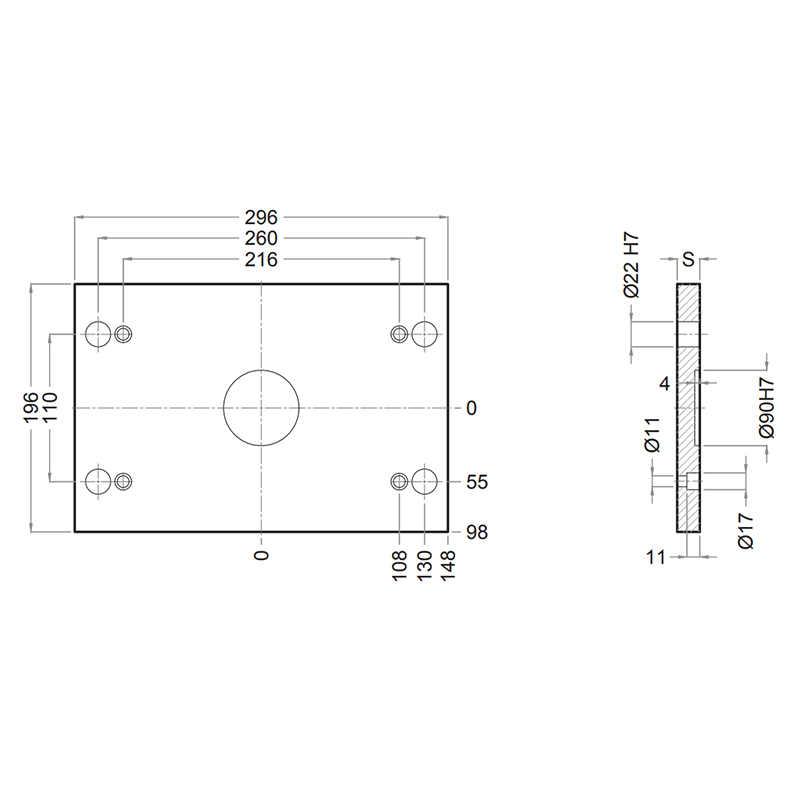 PDC 156x296 - Lateral Overhanging Top / Bottom Clamping Mounting Plate