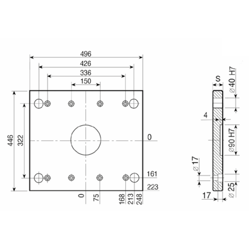 PDC 396x496- Lateral Overhanging Top / Bottom Clamping Mounting Plate