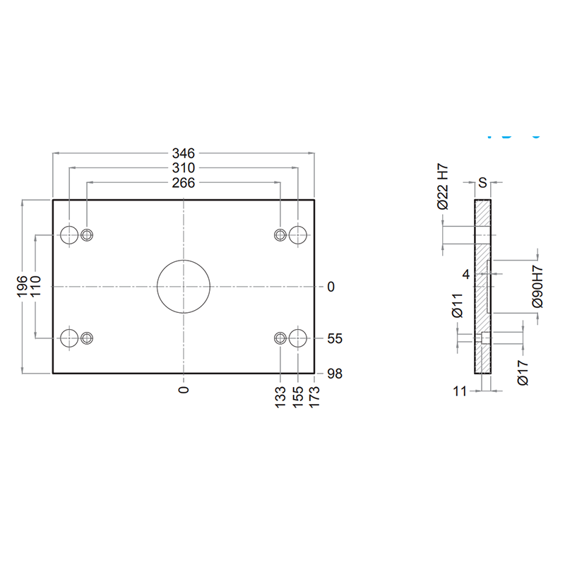 PDC 156x346 - Lateral Overhanging Top / Bottom Clamping Mounting Plate
