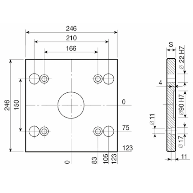 PDC 196x246 - Lateral Overhanging Top / Bottom Clamping Mounting Plate