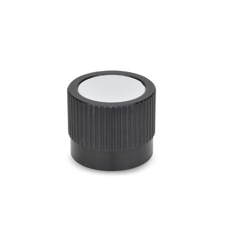 These GN 726.1 control knobs are an accurate means of making fine, precise position adjustments. The light grey cover shrouds the fixing components as well as the shaft end. The cover also lends itself to a logo or other symbols.