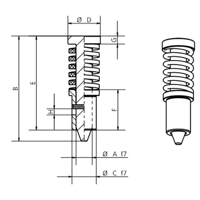 Pilot units, PU, are precise pins equipped with ejector that allows the balancing of a metal sheet by previously performed holes.