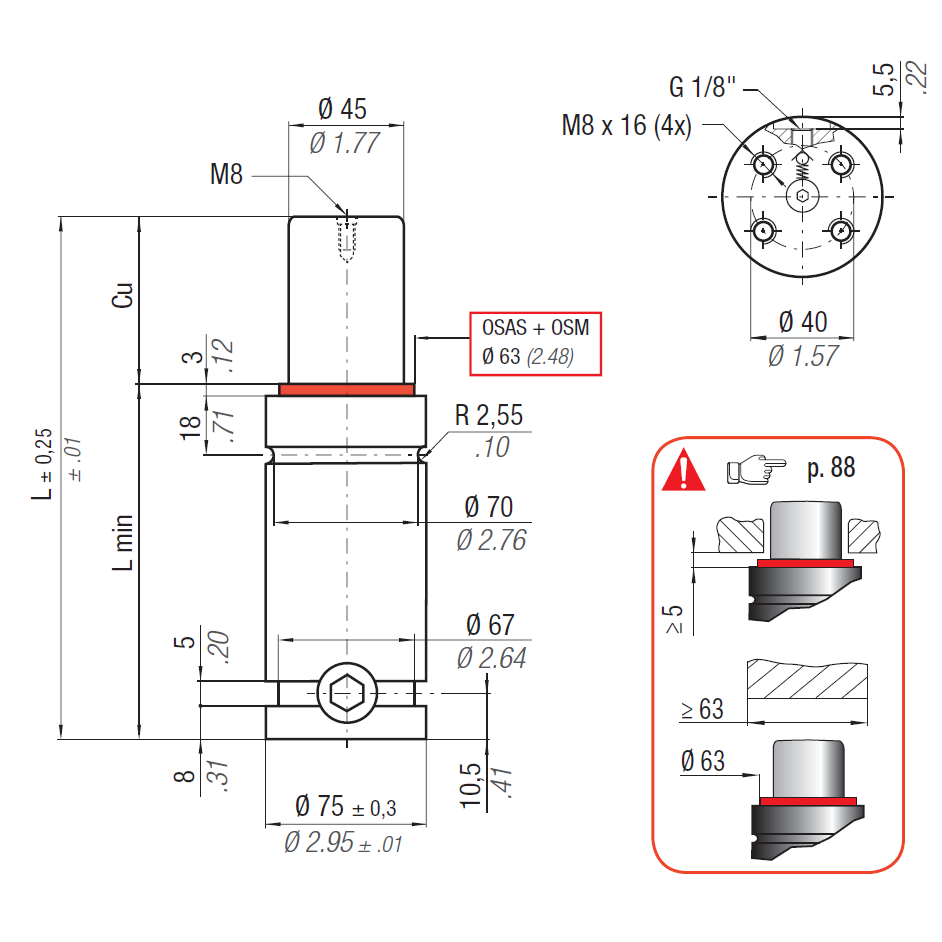 RG2400 Series - Minimum height, maximum force, hose cylinder with G1/8 charging port.