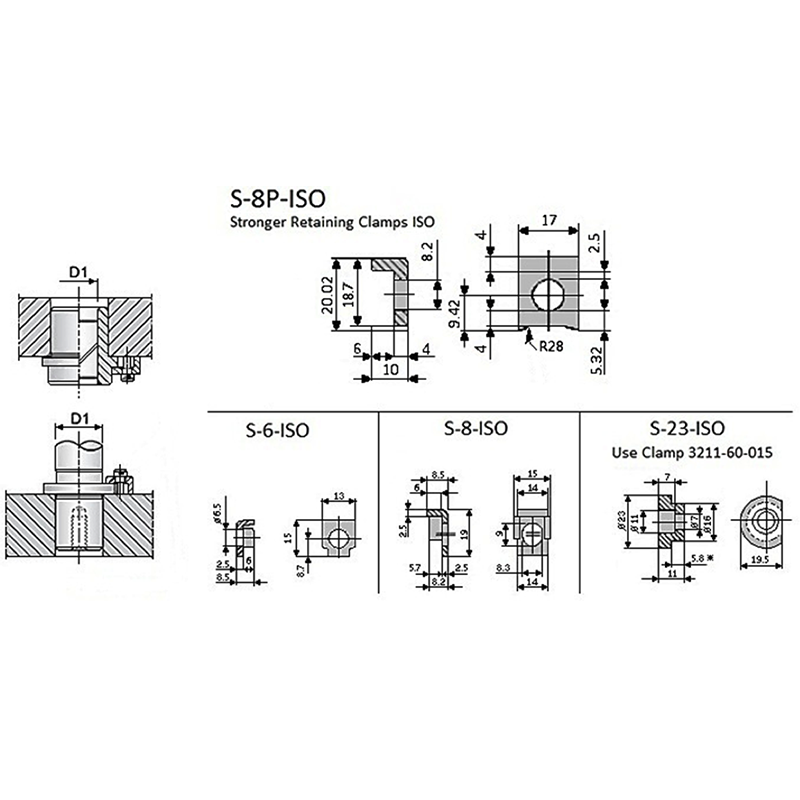 - S-8P-ISO are our standard clamps for 6mm flange.