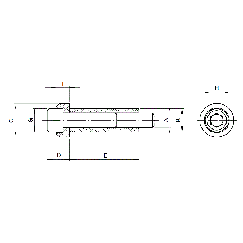 Adjustable shoulder bolt and spacer sleeve, SVC type, made to DIN 912 standards and for a wide range of applications, and offering a stronger bolt for shear resistance with the absence of undercuts. Locating through a precision ground tube.