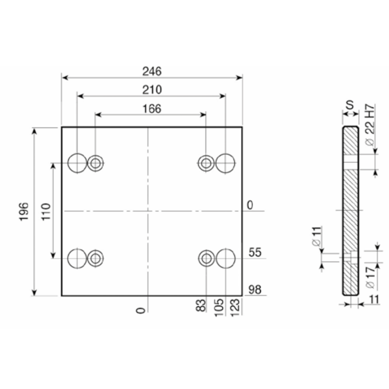 PD 156x246 - Lateral Overhanging Top / Bottom Mounting Plate