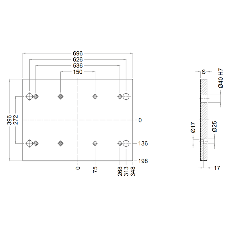 PD 346x696 - Lateral Overhanging Top / Bottom Mounting Plate