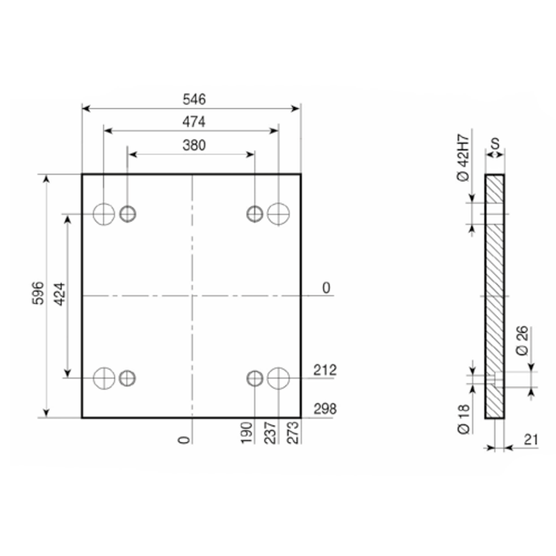 PD 496x546- Lateral Overhanging Top / Bottom Mounting Plate