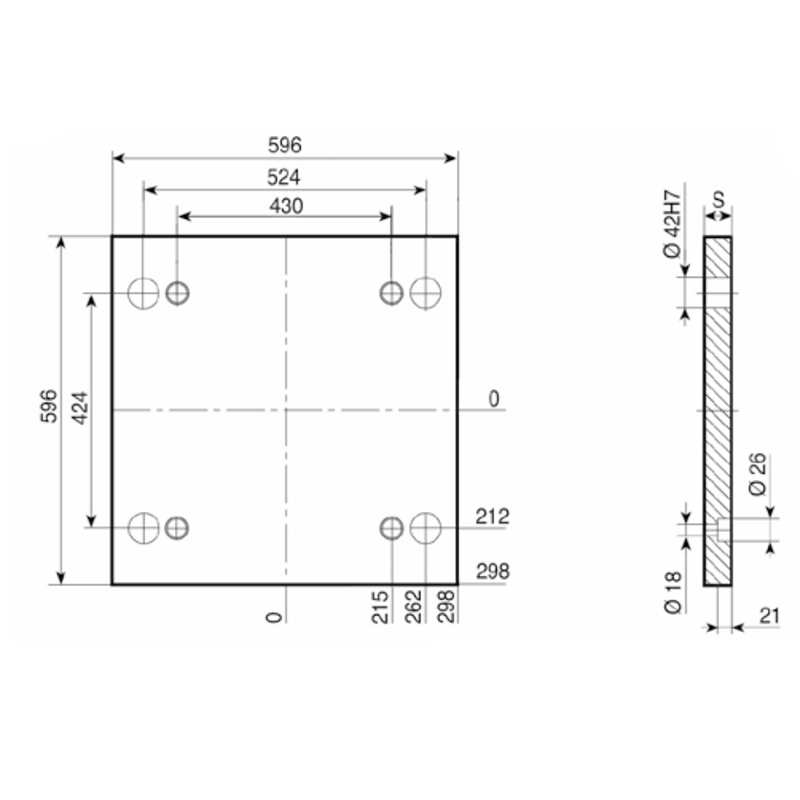 PD 496x596- Lateral Overhanging Top / Bottom Mounting Plate