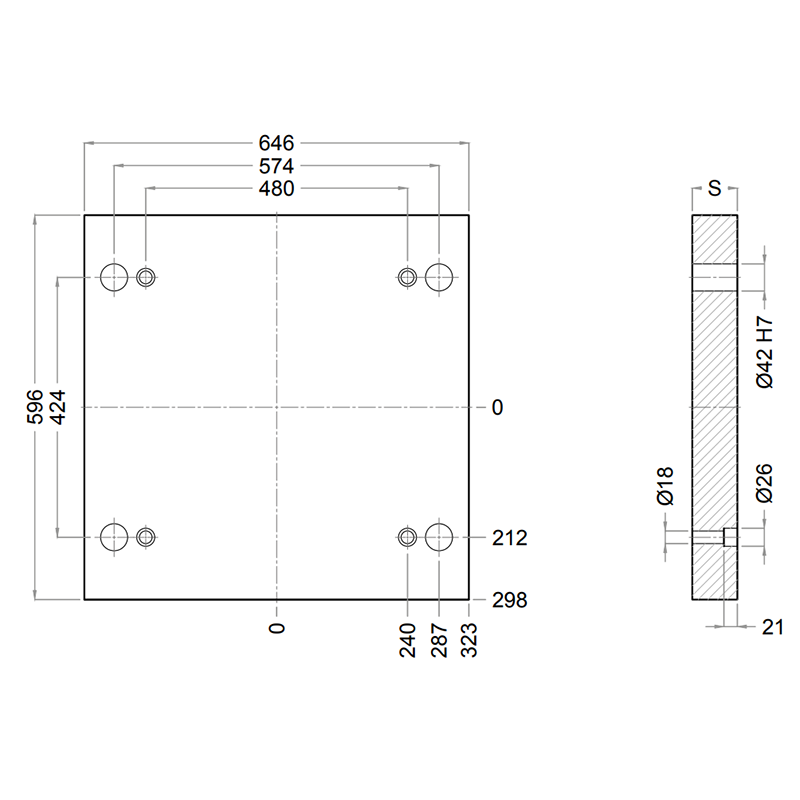 PD 496x646- Lateral Overhanging Top / Bottom Mounting Plate