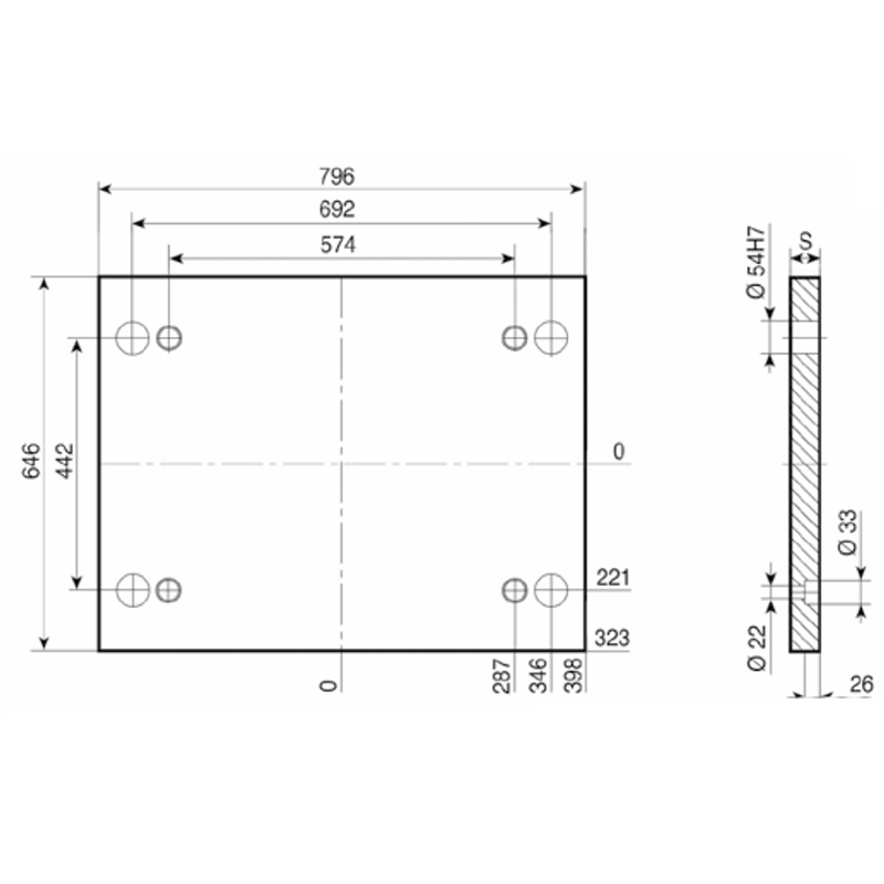 PD 546x796- Lateral Overhanging Top / Bottom Mounting Plate