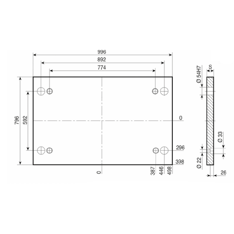PD 696x996- Lateral Overhanging Top / Bottom Mounting Plate
