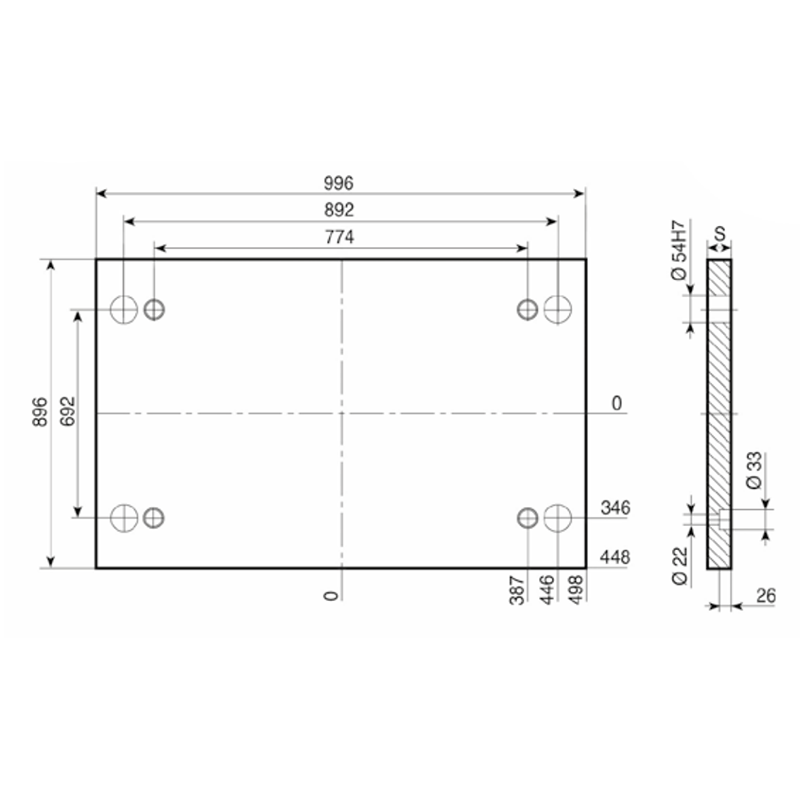 PD 796x996- Lateral Overhanging Top / Bottom Mounting Plate