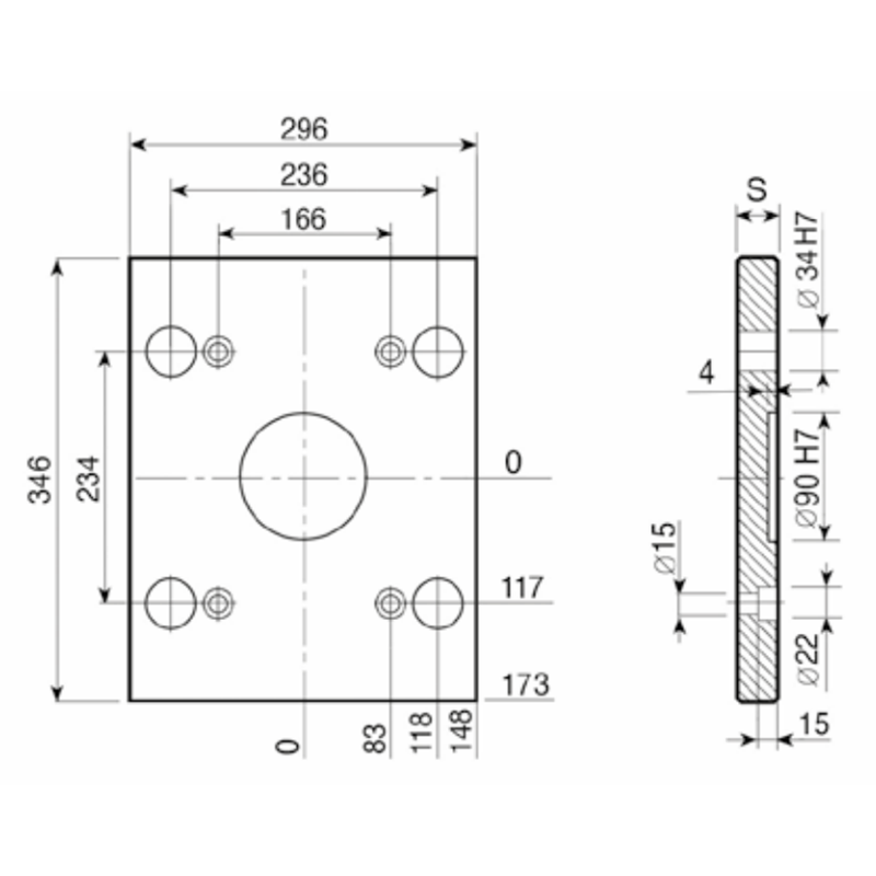 PDC 296x296 - Lateral Overhanging Top / Bottom Clamping Mounting Plate