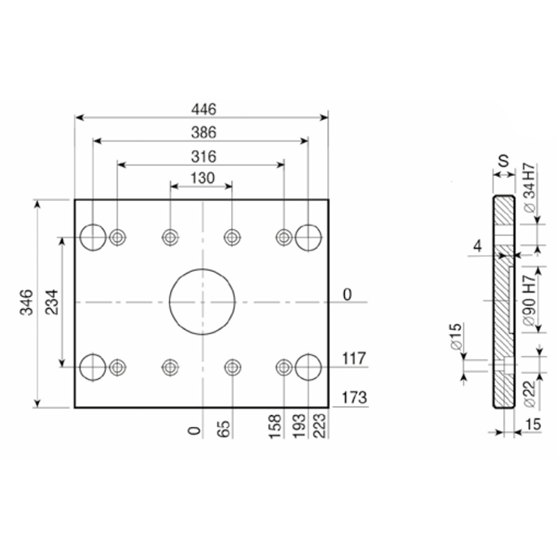 PDC 296x446 - Lateral Overhanging Top / Bottom Clamping Mounting Plate