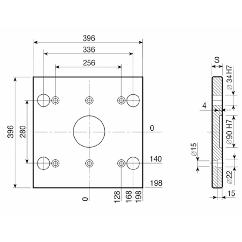 PDC 346x396- Lateral Overhanging Top / Bottom Clamping Mounting Plate